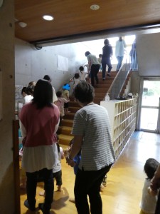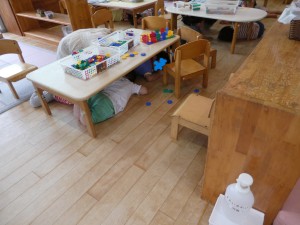 | 地震が落ち着いたので、遊戯室へみんなで移動しました。そこで、電気や水道、ガスが使えない等、防災訓練の話を聞きました。 |
