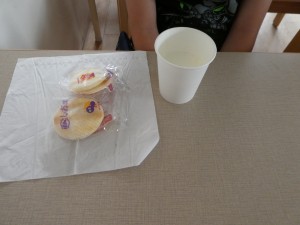 | おやつも、紙コップやティッシュペーパーを使って頂きました。おやつ後には電気や水道も復旧していつもの日常に戻りました。 |
